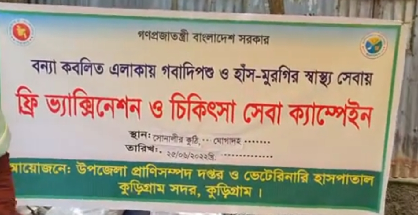 বন্যা কবলিত এলাকায় গবাদিপশু ও হাঁস-মুরগির স্বাস্থ্য ব্যবস্থাপনায় ফ্রি ভ্যাক্সিনেশন ও ভেটেরিনারি মেডিকেল ক্যাম্প